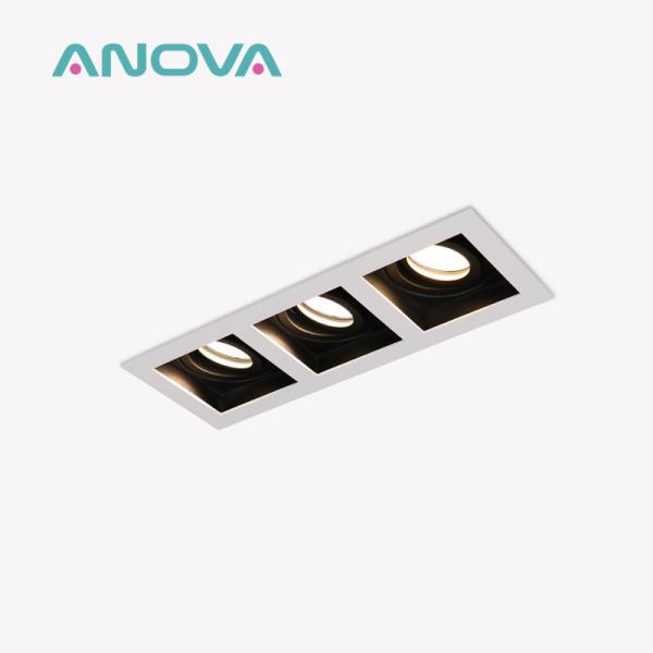 Crafted from top-notch aluminum, this triple-head LED recessed spotlight frame comes in stylish black or white finishes, suitable for homes and businesses. Each of the three light heads has a deep anti-glare feature for comfortable and focused lighting. The inner rings are adjustable up to 25° for customizable lighting. With compatibility for GU10, MR16, and LED modules, installation is a breeze with the recessed mounting system. This durable and secure frame is a great option for contemporary lighting needs.